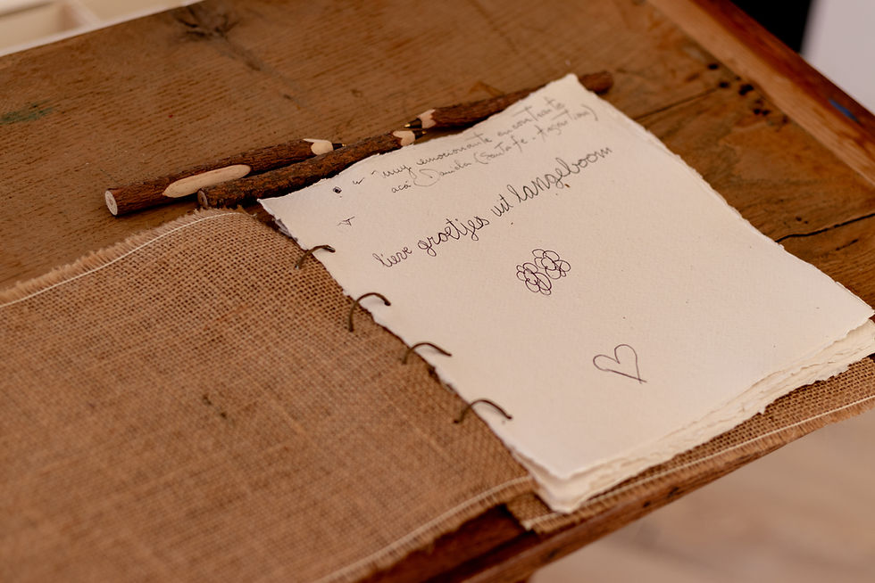 I also placed another handmade book here, this one empty and open, inviting visitors to fill its pages with their thoughts and dedications.